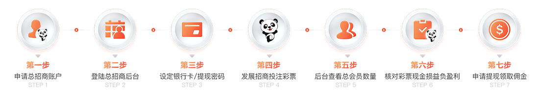 您只需要通过网络推广或介绍身边朋友成为您的会员,数量无上限,无论您推荐多少个会员都归属于您招商线下会员,熊猫根据对应彩种的投注总额,给于招商、实时结算返点。线下所有会员越多您的返点将获得越多!